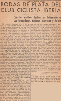 A continuación reproducimos por su interés la entrevista que el diario AMANECER realizó al fundador del Club Ciclista Iberia, D. Francisco Martínez, en la fecha de celebración de las Bodas de Plata de la entidad.
