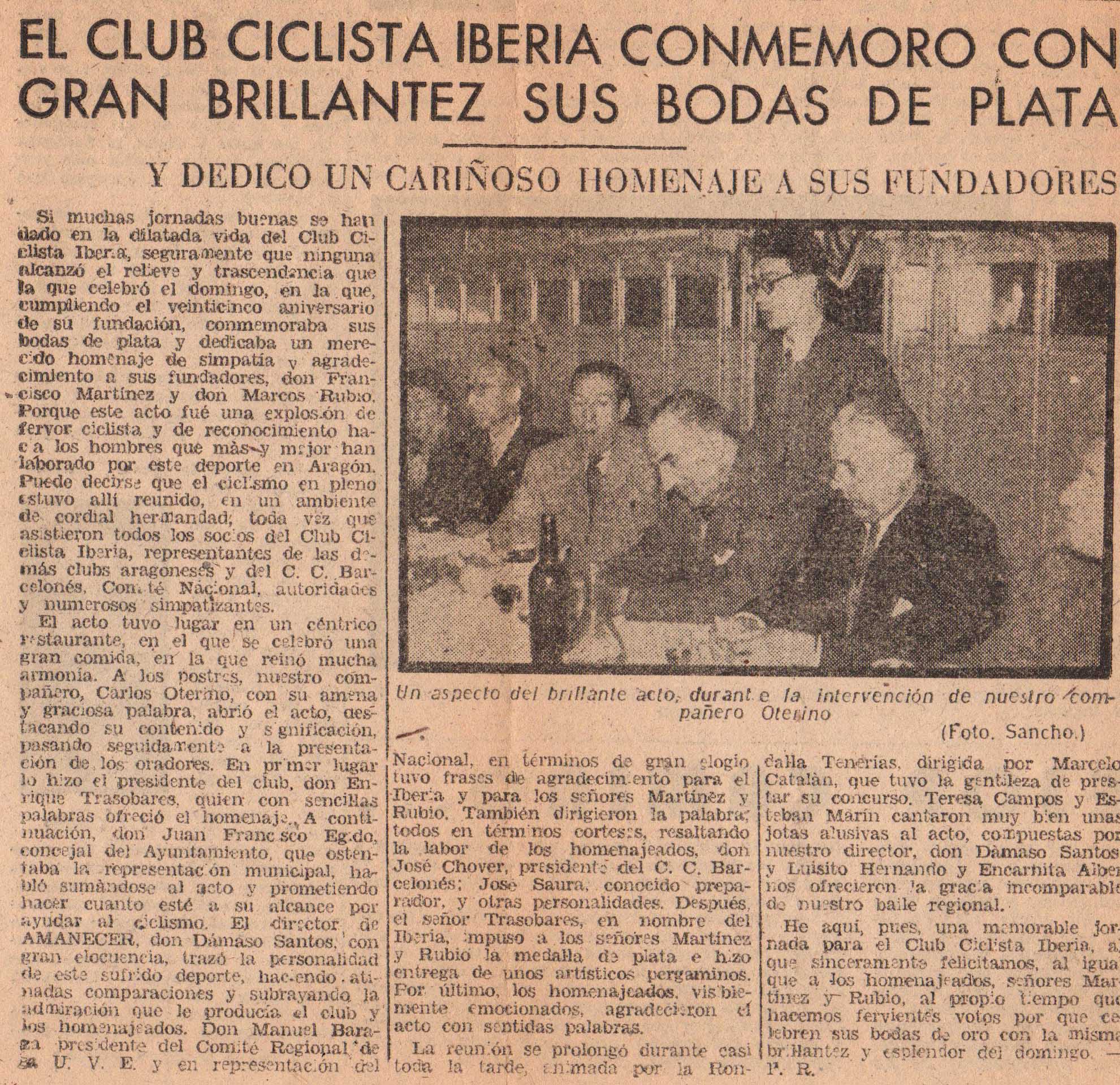 En 1949 el Club Ciclista Iberia celebró su primera efeméride importante en el tiempo: los 25 años de su creación. El acontecimiento
